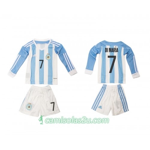 Camisolas de Futebol Argentina Angel Di Maria 7 Criança Equipamento Principal 2016 Manga Comprida