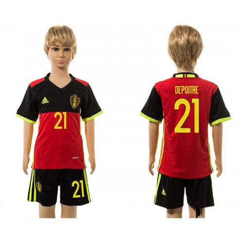 Camisolas de Futebol Bélgica Depoitre 21 Criança Equipamento Principal 2016 Manga Curta