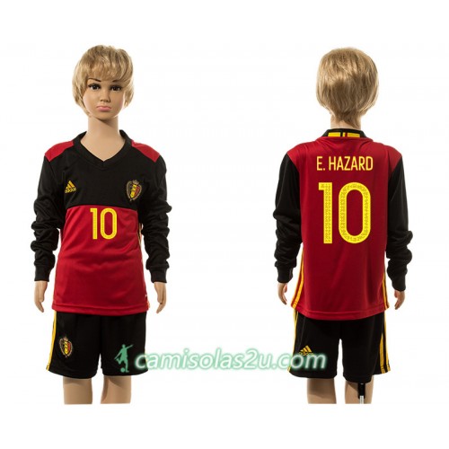 Camisolas de Futebol Bélgica Hazard 10 Criança Equipamento Principal 2016 Manga Comprida