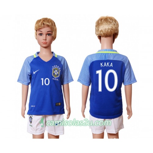 Camisolas de Futebol Brasil Kaka 10 Criança Equipamento Principal 2016 Manga Curta