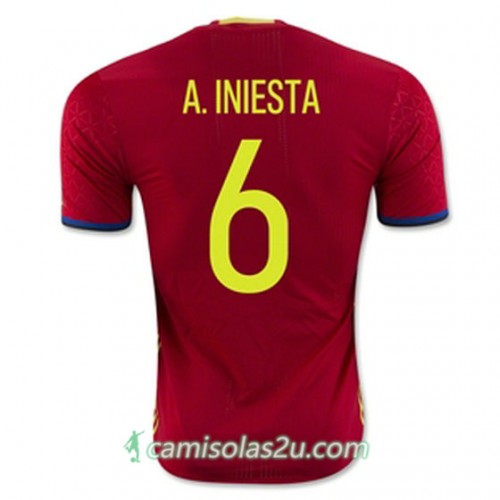 Camisolas de Futebol Espanha A INIESTA Equipamento Principal Euro 2016