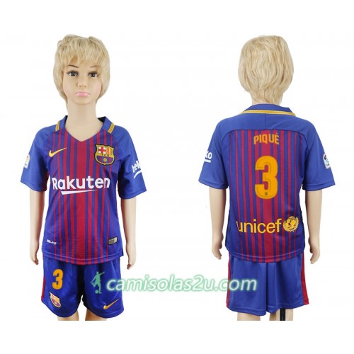 Camisolas de Futebol FC Barcelona Gerard Pique 3 Criança Equipamento Principal 2017/18 Manga Curta