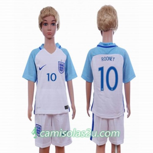 Camisolas de Futebol Inglaterra Wayne Rooney 10 Criança Equipamento Principal 2016 Manga Curta