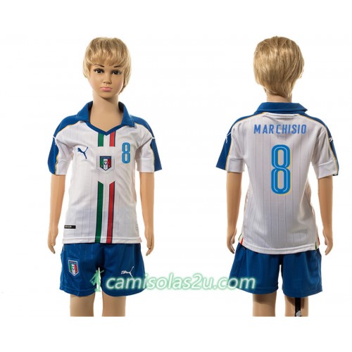 Camisolas de Futebol Itália Marchisio 8 Criança Equipamento Alternativa 2016 Manga Curta