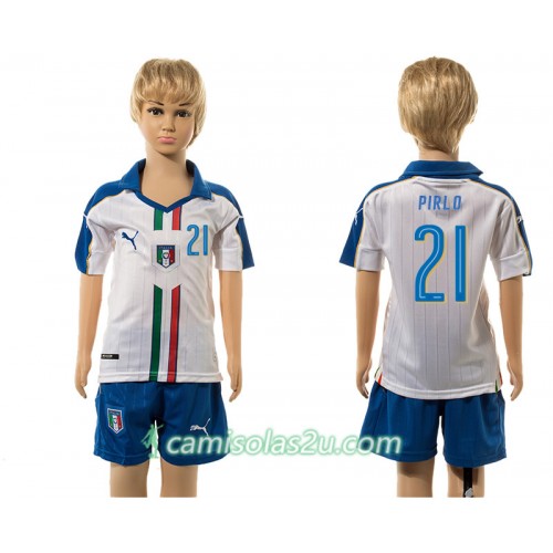 Camisolas de Futebol Itália Pirlo 21 Criança Equipamento Alternativa 2016 Manga Curta