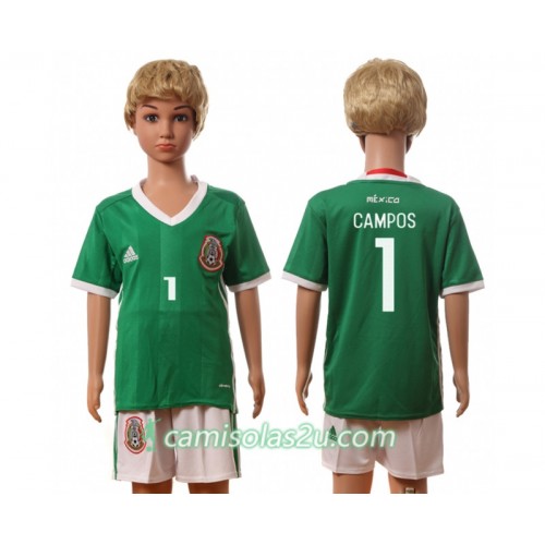 Camisolas de Futebol México Campos 1 Criança Equipamento Principal 2016 Manga Curta