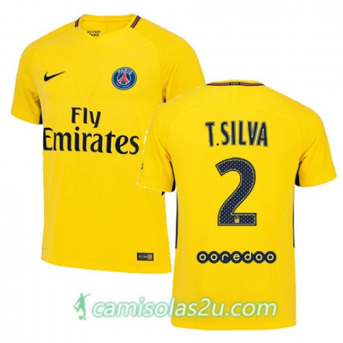 Camisolas de Futebol Paris Saint-Germain THIAGO SILVA Equipamento Alternativa 2017/18 Manga Curta