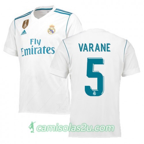 Camisolas de Futebol Real Madrid VARANE Equipamento Principal 2017/18 Manga Curta