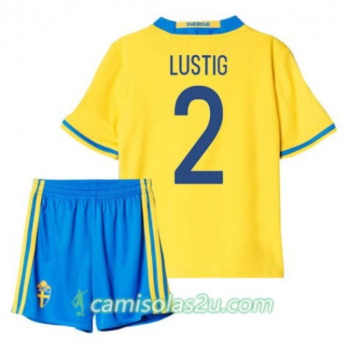 Camisolas de Futebol Suécia Lustig 2 Criança Equipamento Principal 2016 Manga Curta