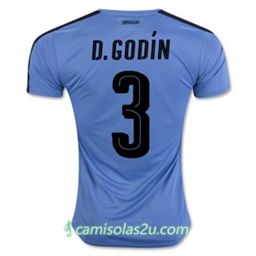 Camisolas de Futebol Uruguai Diego Godín Equipamento Principal 2016/17 Manga Curta
