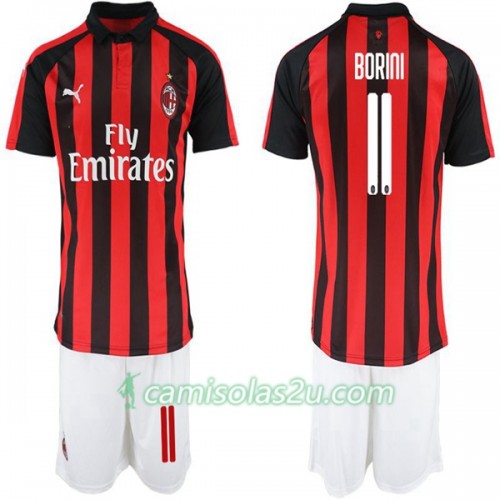 Camisolas de Futebol AC Milan Fabio Borini 11 Criança Equipamento Principal 2018/19 Manga Curta