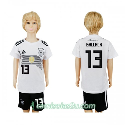 Camisolas de Futebol Alemanha Ballack 13 Criança Equipamento Principal Copa do Mundo 2018 Manga Curta