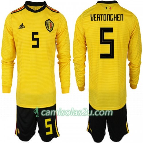 Camisolas de Futebol Bélgica VERTONGHEN 5 Criança Equipamento Alternativa Copa do Mundo 2018 Manga Comprida