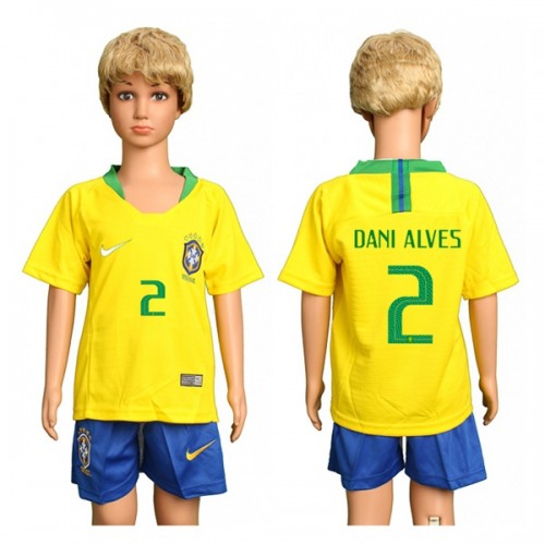 Camisolas de Futebol Brasil Dani Alves 2 Criança Equipamento Principal Copa do Mundo 2018 Manga Curta