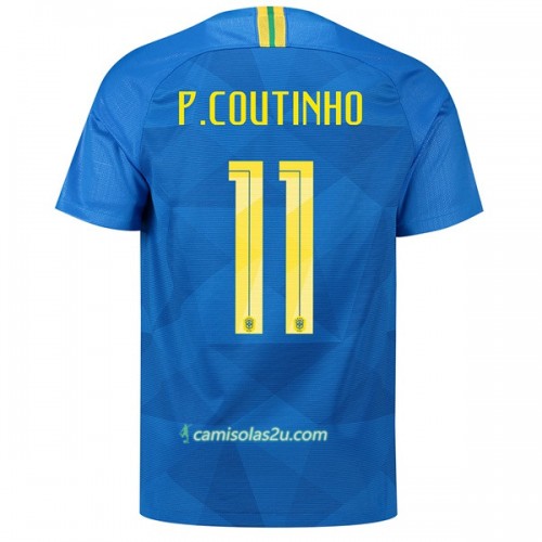 Camisolas de Futebol Brasil P.Coutinho 11 Equipamento Alternativa Copa do Mundo 2018 Manga Curta