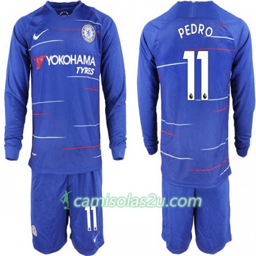 Camisolas de Futebol Chelsea Pedro 11 Criança Equipamento Principal 2018/19 Manga Comprida