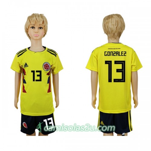 Camisolas de Futebol Colômbia Gonzalez 13 Criança Equipamento Principal Copa do Mundo 2018 Manga Curta