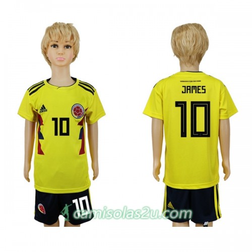 Camisolas de Futebol Colômbia James 10 Criança Equipamento Principal Copa do Mundo 2018 Manga Curta