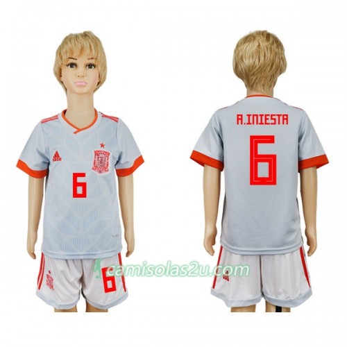 Camisolas de futebol Espanha A_Iniesta 6 Criança Equipamento Alternativa Copa do Mundo 2018 Manga Curta