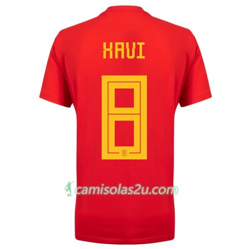 Camisolas de Futebol Espanha Xavi 8 Equipamento Principal Copa do Mundo 2018 Manga Curta