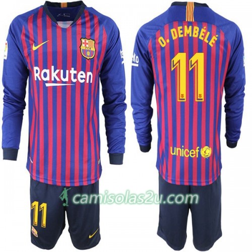 Camisolas de Futebol FC Barcelona O. Dembele 11 Criança Equipamento Principal 2018/19 Manga Comprida