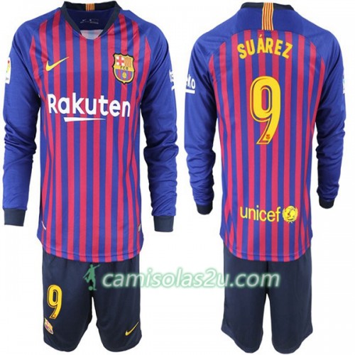 Camisolas de Futebol FC Barcelona Suarez 9 Criança Equipamento Principal 2018/19 Manga Comprida