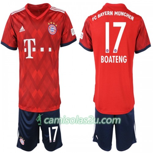 Camisolas de Futebol FC Bayern München Boateng 17 Criança Equipamento Principal 2018/19 Manga Curta