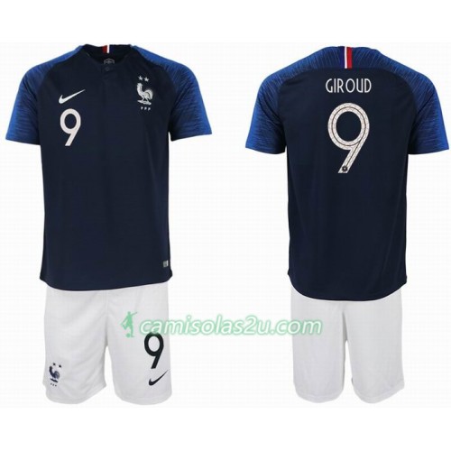 Camisolas de Futebol França GIROUD 9 2 star Criança Equipamento Principal Copa do Mundo 2018 Manga Curta
