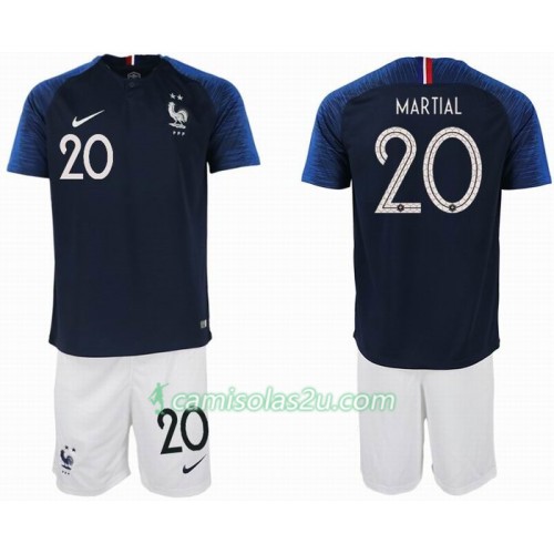 Camisolas de Futebol França MARTIAL 20 2 star Criança Equipamento Principal Copa do Mundo 2018 Manga Curta