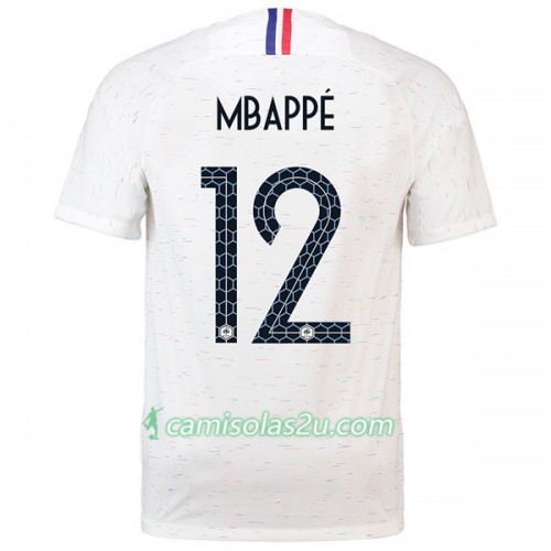 Camisolas de Futebol França Mbappe 12 Equipamento Alternativa Copa do Mundo 2018 Manga Curta