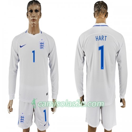 Camisolas de Futebol Inglaterra Hart 1 Equipamento Principal Copa do Mundo 2018 Manga Comprida