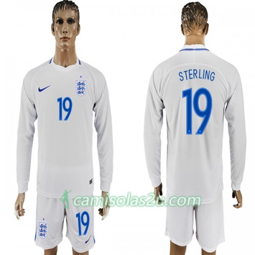 Camisolas de Futebol Inglaterra Sterling 19 Equipamento Principal Copa do Mundo 2018 Manga Comprida