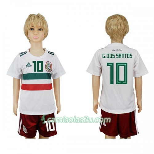 Camisolas de futebol México G.Dos Santos 10 Criança Equipamento Alternativa Copa do Mundo 2018 Manga Curta