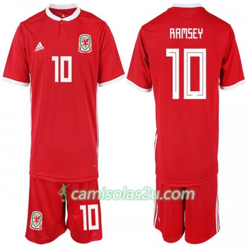 Camisolas de Futebol País de Gales RAMSEY 10 Criança Equipamento Principal 2018/19 Manga Curta