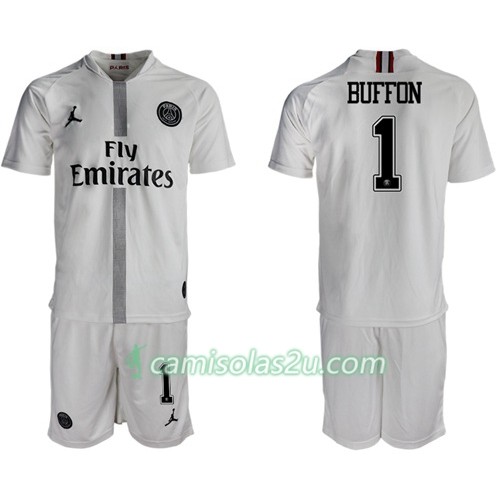 Camisolas de Futebol Paris Saint-Germain Buffon 1 Jodan Branco Criança Equipamento 3ª 2018/19 Manga Curta
