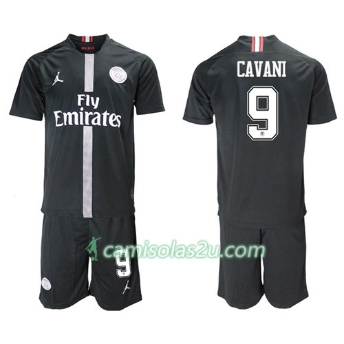 Camisolas de Futebol Paris Saint-Germain Cavani 9 Jodan Preto Criança Equipamento 3ª 2018/19 Manga Curta