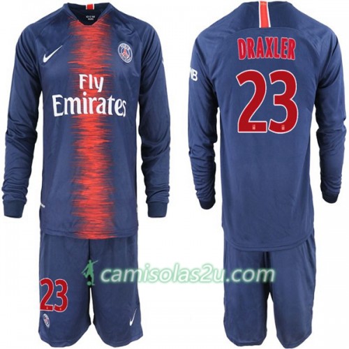 Camisolas de Futebol Paris Saint Germain Draxler 23 Criança Equipamento Principal 2018/19 Manga Comprida