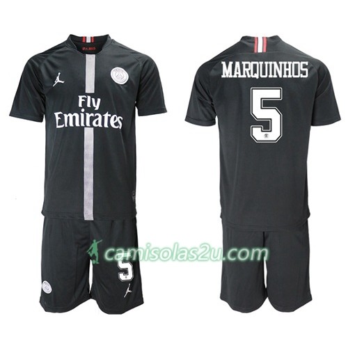 Camisolas de Futebol Paris Saint-Germain Marquinhos 5 Jodan Preto Criança Equipamento 3ª 2018/19 Manga Curta