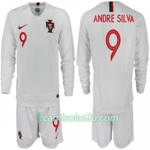 Camisolas de Futebol Portugal ANDRE SILVA 9 Criança Equipamento Alternativa Copa do Mundo 2018 Manga Comprida