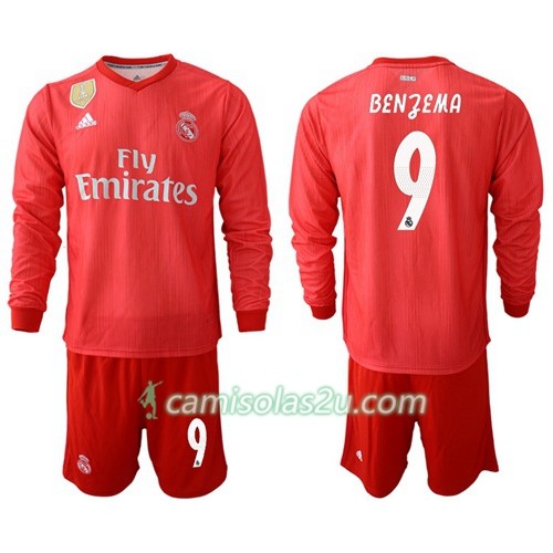 Camisolas de Futebol Real Madrid Benzema 9 Criança Equipamento 3ª 2018/19 Manga Comprida