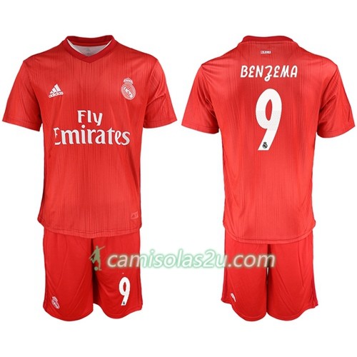 Camisolas de Futebol Real Madrid Benzema 9 Criança Equipamento 3ª 2018/19 Manga Curta