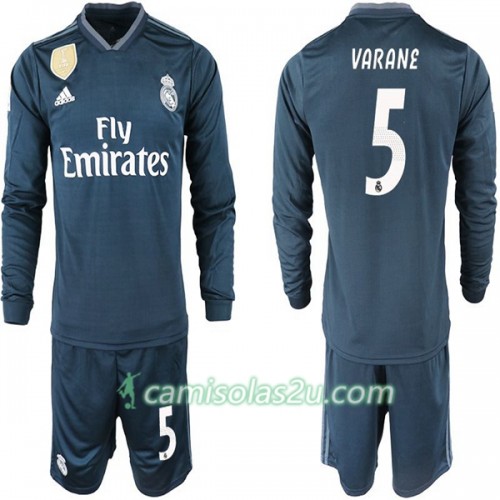 Camisolas de Futebol Real Madrid VARANE 5 Criança Equipamento Alternativa 2018/19 Manga Comprida
