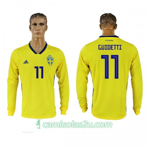 Camisolas de Futebol Suécia Guidetti 11 Equipamento Principal Copa do Mundo 2018 Manga Comprida