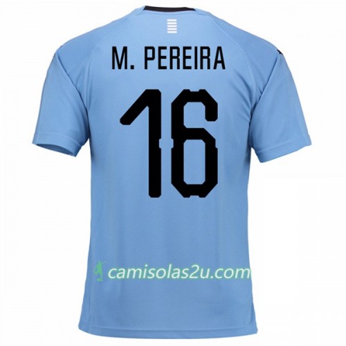 Camisolas de Futebol Uruguai M.Pereira 16 Equipamento Principal Copa do Mundo 2018 Manga Curta